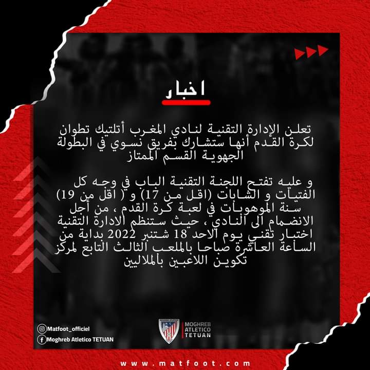 اختبار لفائدة الفتيات والشابات أقل من 17 و19 سنة