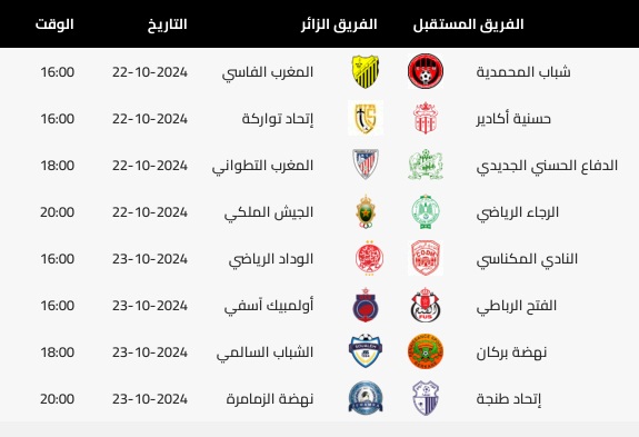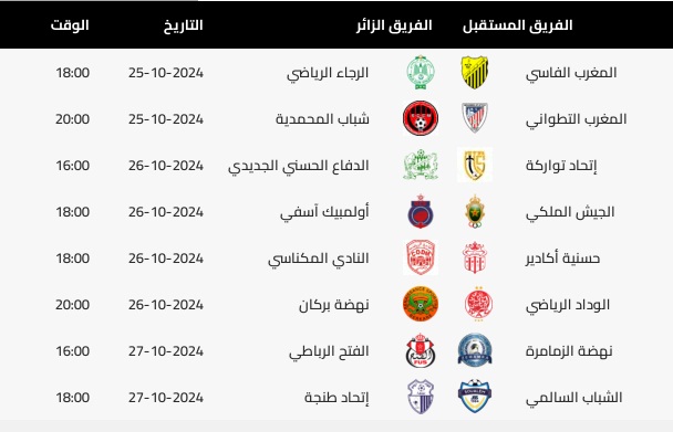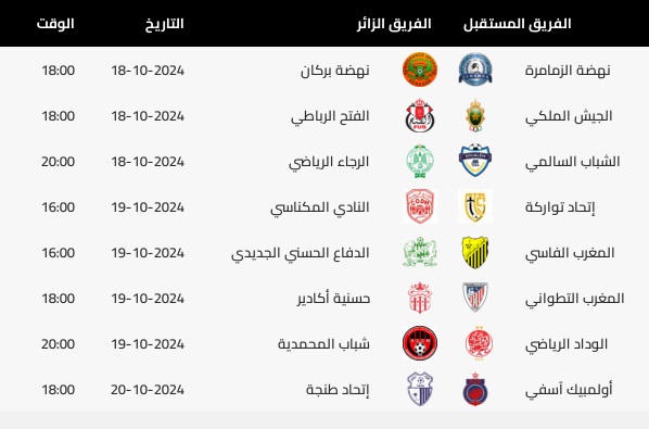 عممت لجنة البرمجة بالعصبة الوطنية الاحترافية لكرة القدم الاحترافية يومه الجمعة 11 أكتوبر 2024 على أندية القسم الأول برنامج الدورات 6، 7، 8، 9، 10 من البطولة الاحترافية “إنوي”، وإليكم برنامج الدورات المذكورة.
