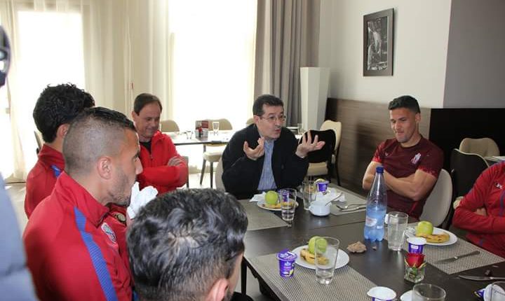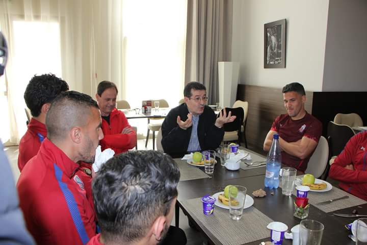 وقام السيد الرئيس بتناول وجبة الغداء مع اللاعبين، والاجتماع معهم مباشرة بعد ذلك لتحفيزهم على مواصلة حصد النتائج الايجابية، لأجل ضمان البقاء رفقة الكبار.