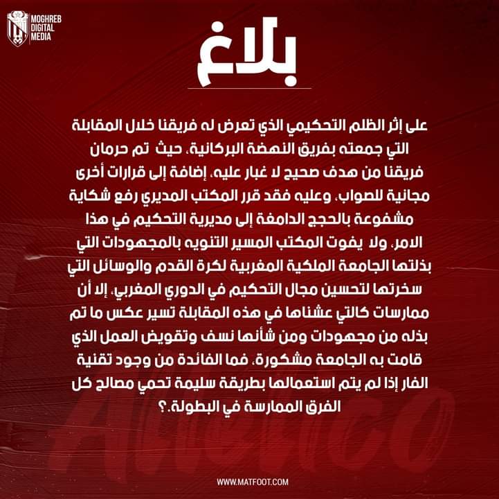 المغرب التطواني يشكوا الحكم كريم صابري إلى مديرية التحكيم