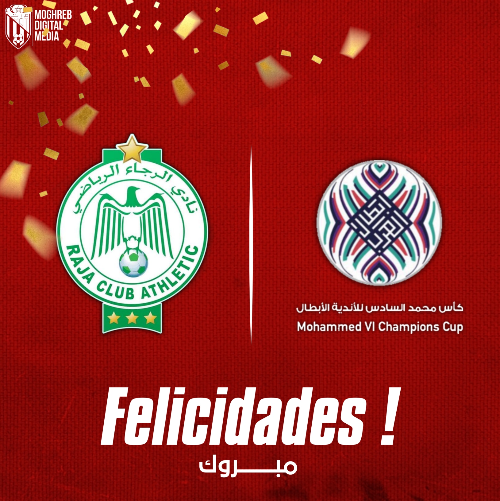 بمناسبة تتويج فريق الرجاء الرياضي البيضاوي بلقب كأس محمد السادس للأندية الأبطال، بعد تغلبه في المباراة النهائية التي أجريت بمركب الأمير مولاي عبد الله بالرباط على حساب اتحاد جدة السعودي بضربات الترجيح بعد نهاية المباراة بالتعادل الايجابي أربعة أهداف داخل كل شبكة، يتقدم السيد محمد رضوان الغازي رئيس فريق المغرب التطواني لكرة القدم أصالة عن نفسه ونيابة عن أعضاء المكتب المديري وكل مكونات النادي، بأحر التهاني لفريق الرجاء الرياضي البيضاوي بكل مكوناته من مسيرين ولاعبين وأطقم تقنية وطبية وإدارية وجمهور.