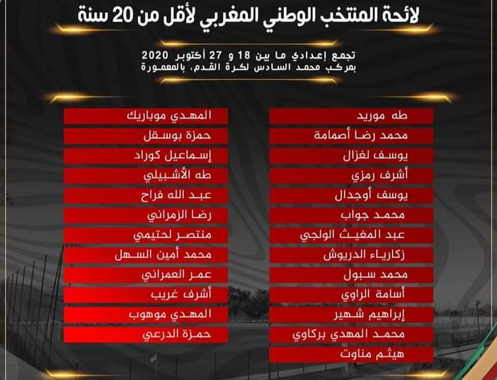 وجه مدرب المنتخب الوطني المغربي لأقل من 20 سنة برنار سيموندي، الدعوة ل 25 لاعبا، من بينهم متوسط ميدان نادي المغرب أتلتيك تطوان إسماعيل كوراد، للدخول في تربص إعدادي بمركب محمد السادس لكرة القدم بالمعمورة، خلال الفترة المتراوحة ما بين 18 و27 أكتوبر 2020، تحسبا لمشاركته في الاستحقاقات المقبلة.