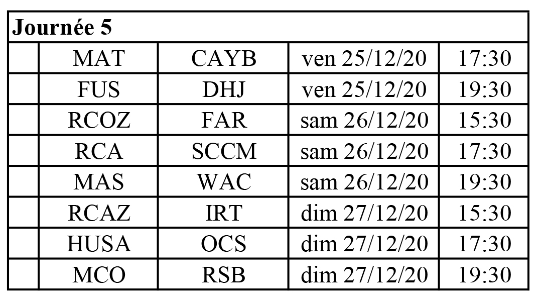 عممت لجنة البرمجة بالعصبة الوطنية الاحترافية لكرة القدم مساء يومه السبت 28 نوفمبر 2020 على الأندية الوطنية برنامج الجولات الخمس الأولى من البطولة الاحترافية “إنوي”، والتي جاءت كالتالي: